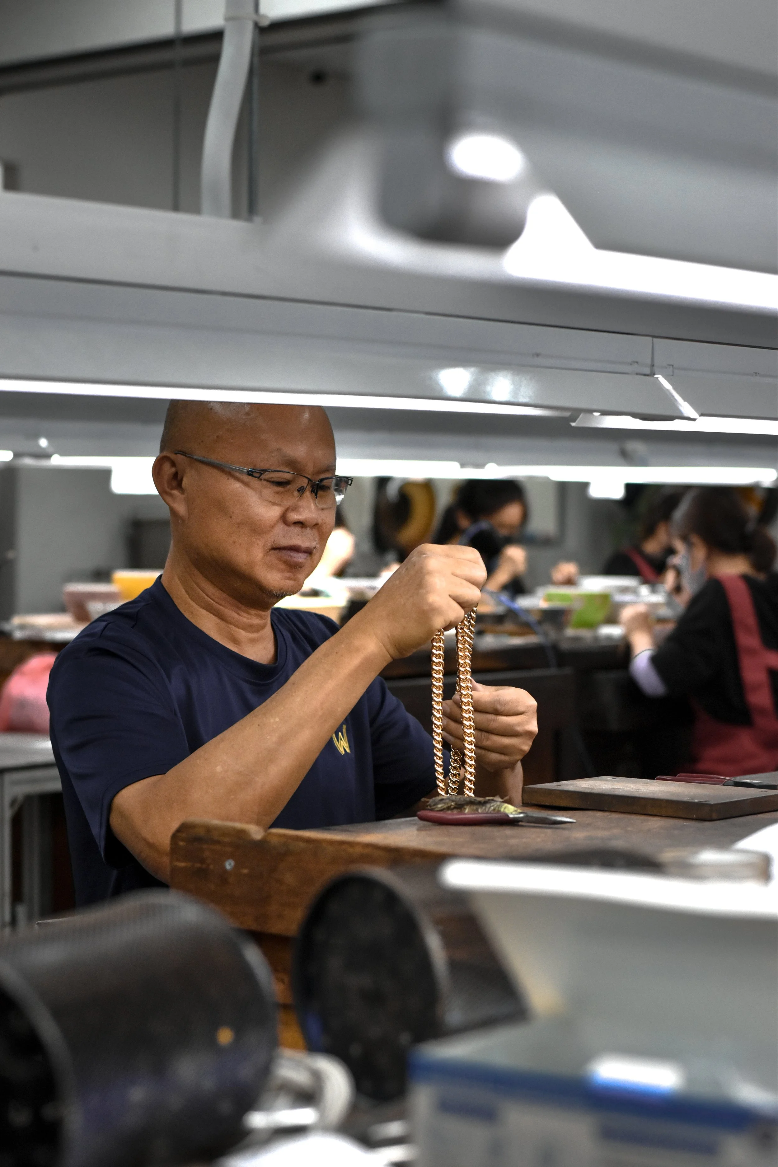 To meet rising demand, we've shifted our production line to our Butterworth, Penang manufacturing plant. Utilizing cutting-edge technology and equipment sourced globally, we ensure the ongoing provision of top-notch products to our customers. Despite the possibility of full automation through machinery, we maintain the artistry of handcrafting gold jewelry. Our manual expertise remains unmatched by machines. Thus, we marry modern machinery with traditional craftsmanship to produce the finest quality gold jewelry.